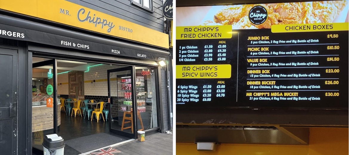 Welcome to Mr Chippy Bistro, your go-to spot in Bexleyheath for delicious food! Specializing in a delightful mix of Fish & Chips, Kebabs, and a fusion of Mexican and Italian dishes, we offer a fantastic array of choices to satisfy your cravings. Enjoy a cozy eat-in experience or opt for convenient takeout through JustEat and Uber Eats. Our restaurant is wheelchair accessible and family-friendly, making it perfect for kids. With a commitment to quality and generous portion sizes, every meal is made memorable. Join us at Parkside Parade and indulge in a culinary adventure!Generous portion sizes stand out as a highlight at Mr Chippy Bistro. Diners rave about the deliciously crispy chicken wings and juicy kebabs, making every meal both satisfying and memorable. The friendly staff adds a touch of warmth to the experience, making visits not just about the food but also about community and service.