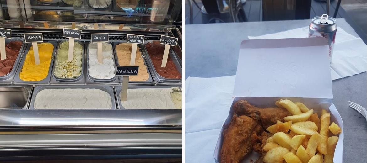 You have loads of choices : kebabs, fish and chips, pizza, pasta, mexican, ice-cream... It's amazing I went to the restaurant today and had some amazing pasta and great chicken wings . I want to eat there every week . I highly recommend it.